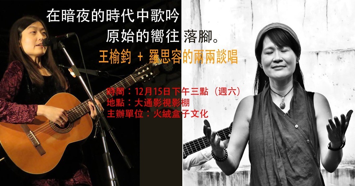 台灣當代聲議這次非常高興且榮幸的同時邀請羅思容、王榆鈞兩位歌手到本系列活動現場以對談、隨興輪唱的方式進行。
